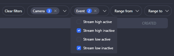 To quickly search for events, filters are provided on each tab. Depending on the selected tab, the set of filters may differ.