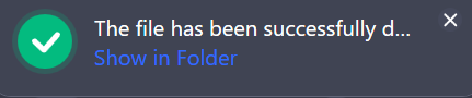 Upon completion of the report generation, you’ll see the following notification. To navigate to the downloaded file, select Show in Folder.