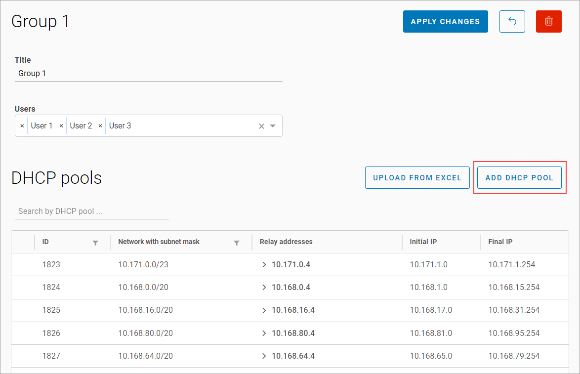 DHCP pools can also be loaded into the group from an Excel file.