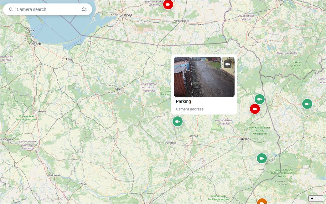 As a result, a separate window with the map will open. A camera icon will be displayed on the map.