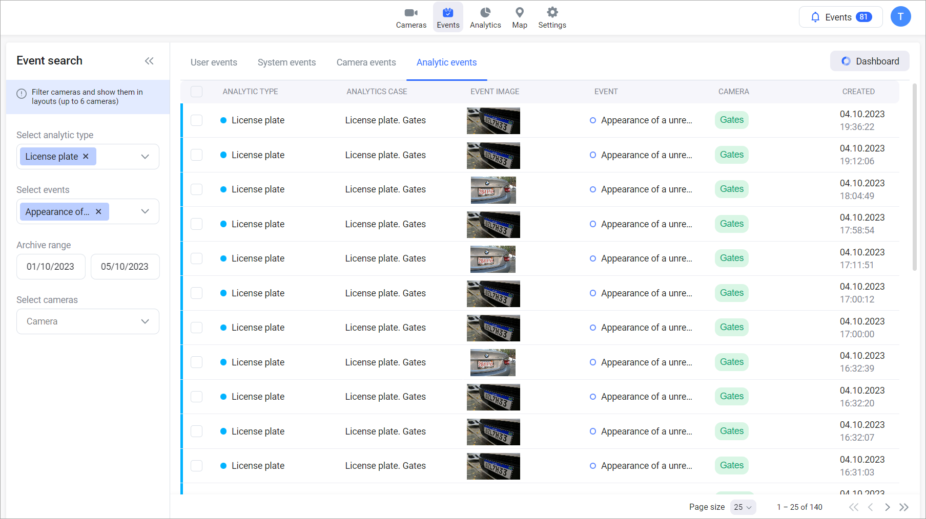 Clicking on the camera name will take you to the camera's archive at the time of the event.