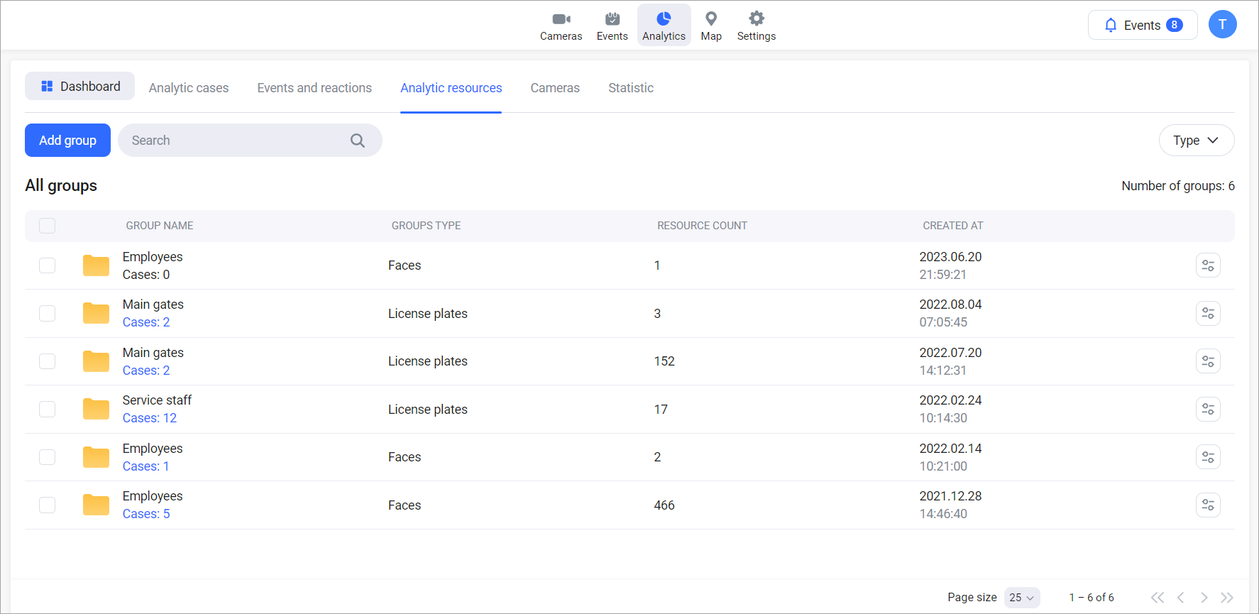 Under the group name, the number of analytics cases in which this group is currently used is indicated. When you click Cases, a list of cases is displayed.