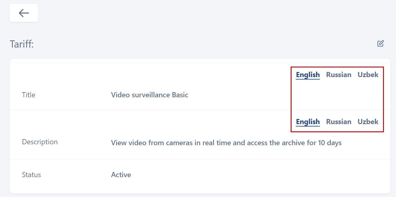 For example, it is essential to ensure that translations for all supported languages are completed when you fill in the form while adding or editing a tariff plan or an additional package.