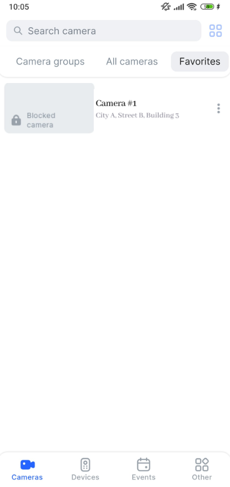 If a camera is blocked, users won’t be able to access video from such a camera, neither in Live nor in Archive mode. The camera preview will have Blocked camera display. A camera will be marked with this status if your contract with the service provider has ended.