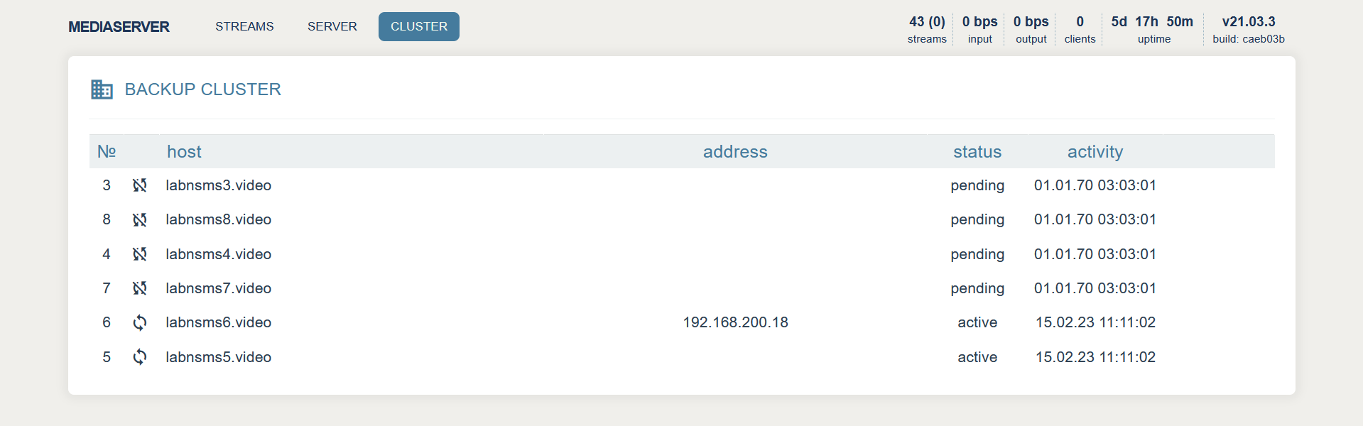 The Cluster tab is informative and displays the state and activity of the clusters.