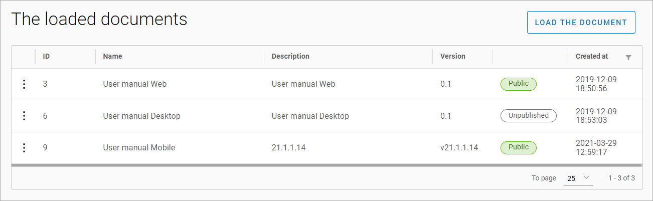 In the Documents > Loaded documents table, you can find a list of documents that are available for download on the client's website.