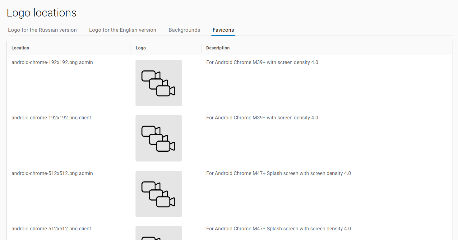 This section is intended for selecting a favicon (an image displayed on the browser tab), as well as choosing the application icon image for Android and iOS mobile devices.