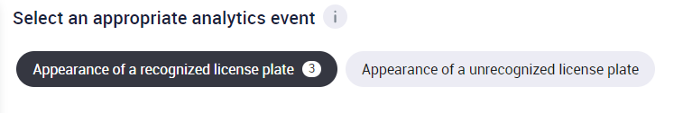 The License plate recognition analytics type allows for the following analytics events: