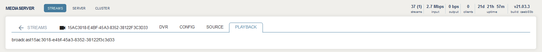 On the Streams tab, all information about streams is displayed, with the filter and the possibility to view a specific stream.