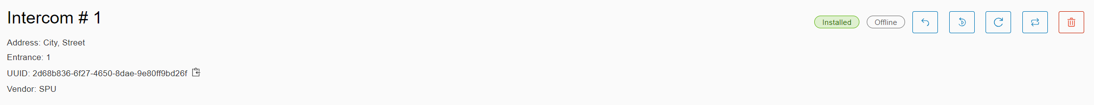 The upper part of the intercom information panel contains the details of the current intercom and a number of options.