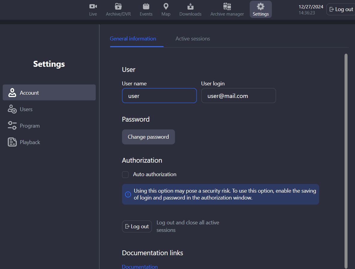 On the Active sessions tab, the user can view and update the list of sessions, as well as end inactive sessions by selecting a relevant button.