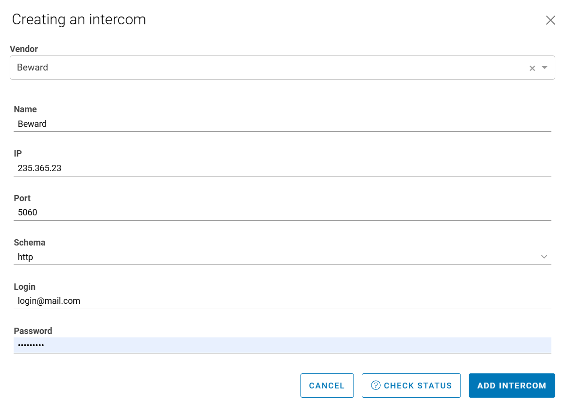 Vendor. The vendor (manufacturer) of the intercom. Select Beward.