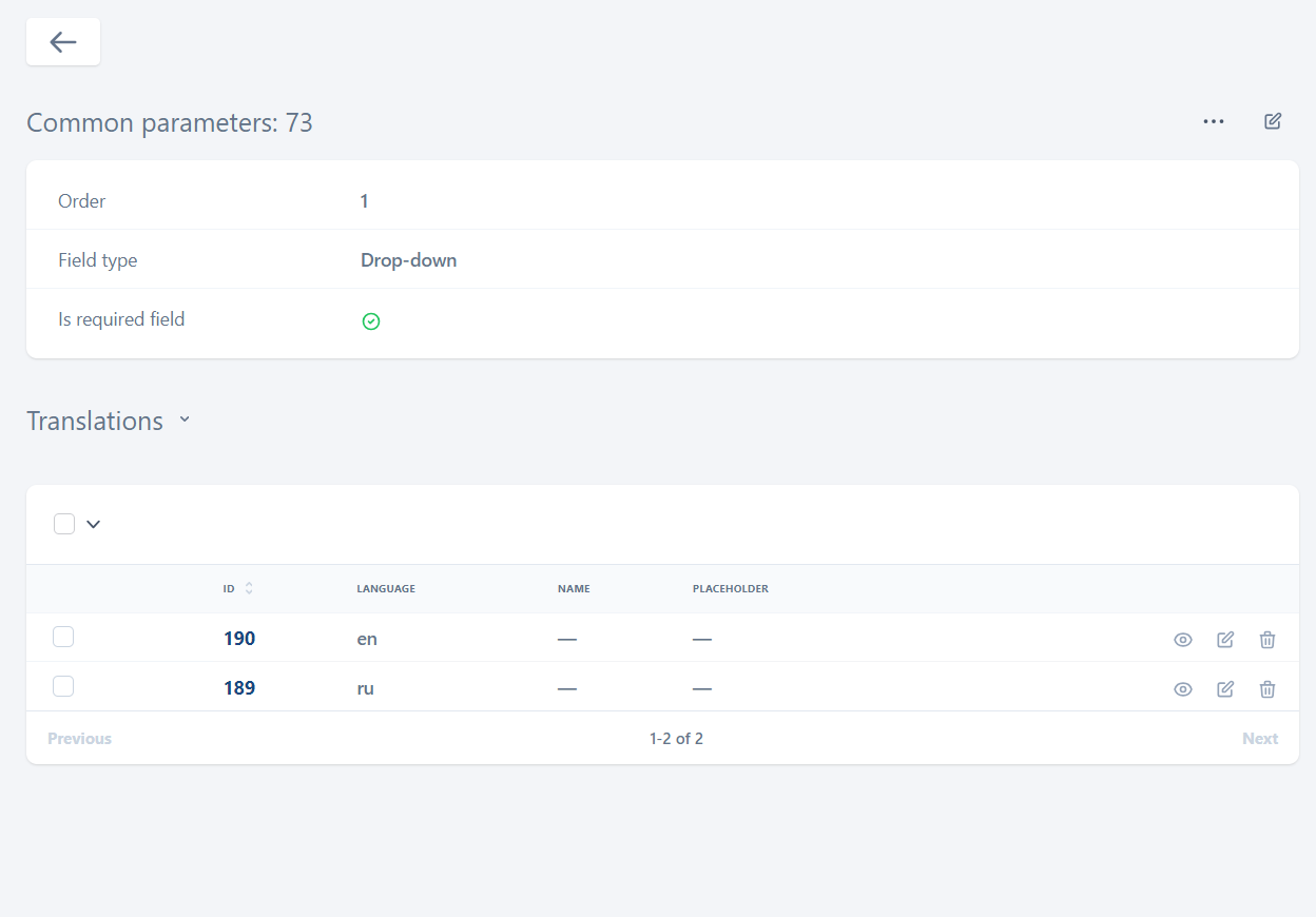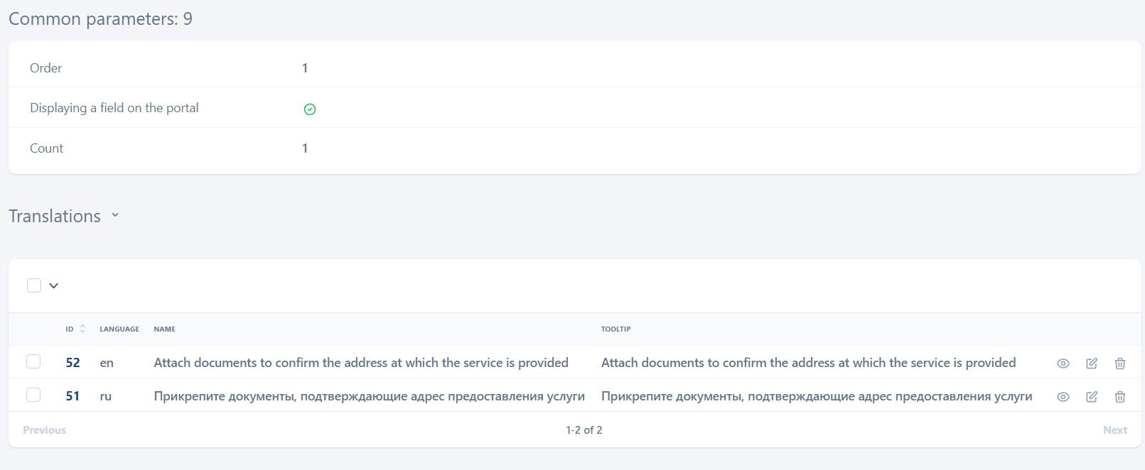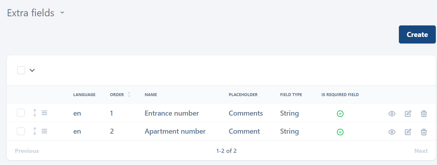 To create an extra field, select Create. The process of creation and editing of translation is the same as described in the section above.