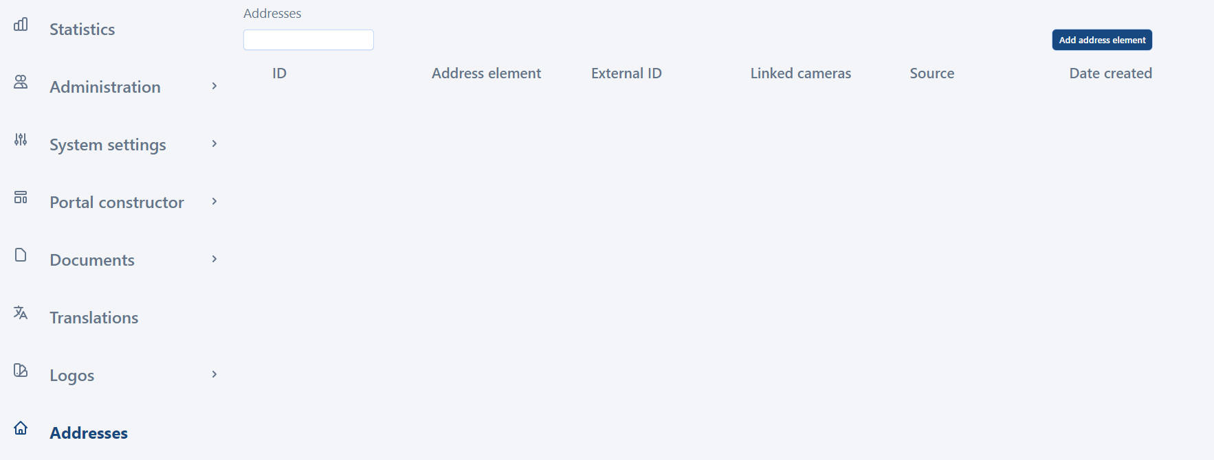 In the Addresses section, you can build the address tree. At these addresses, the User Portal users will be able to connect to the video surveillance services.