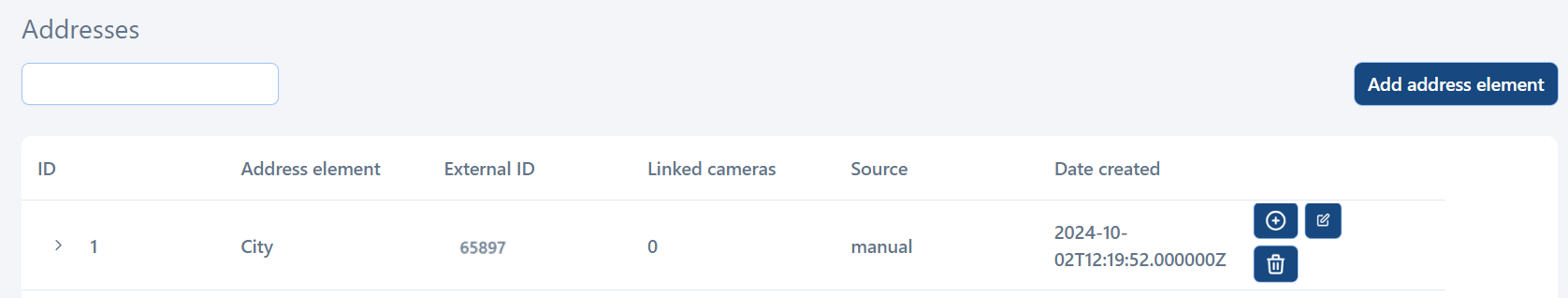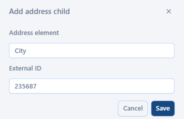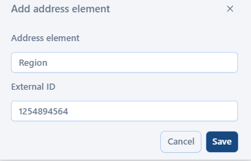 External ID. Specify a unique ID of the address element that is provided by the customer.