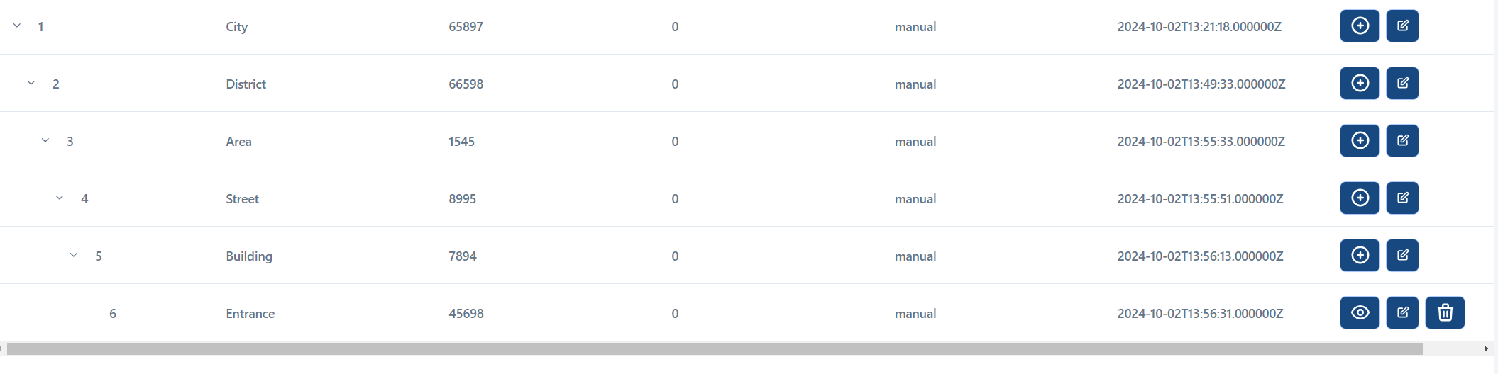 As a result, this opens a form to create a child level of the address.