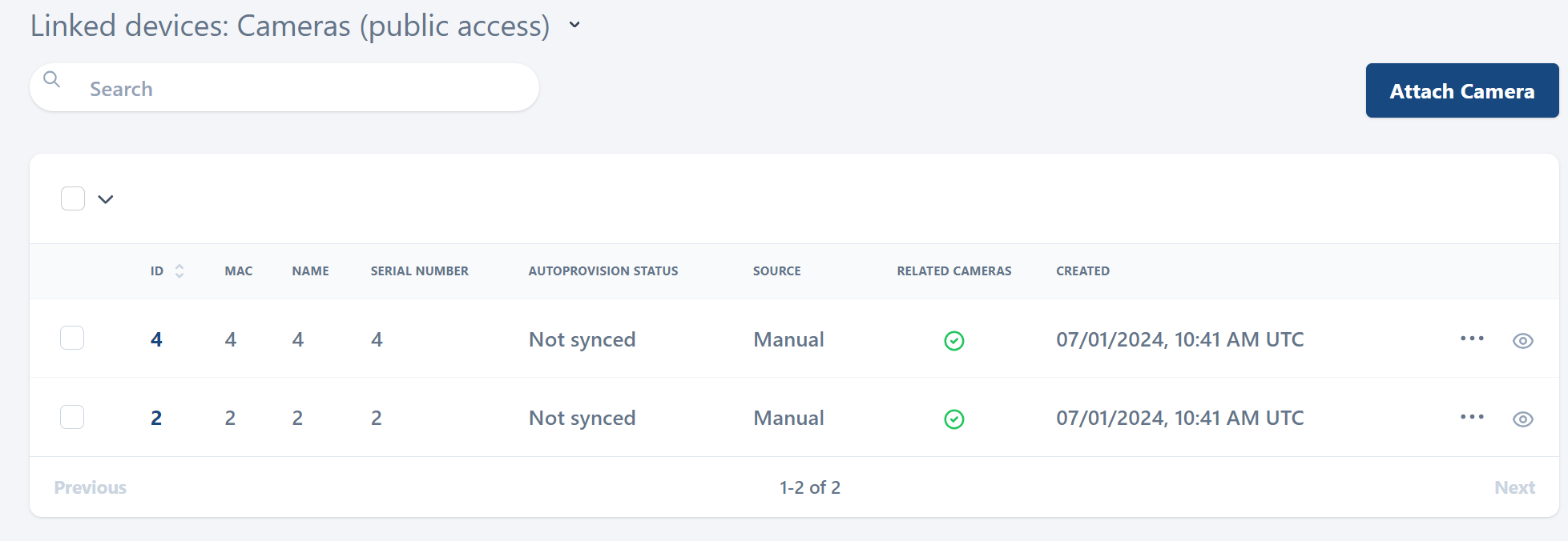 The list contains the cameras that aren’t linked to either of the addresses or to any private folders.