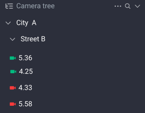 ![]() Camera tree | Under Camera tree, the user can find the cameras that are available to them. The cameras are grouped according to the addresses within the created address system. The Camera tree is automatically generated in the Desktop client, can’t be edited or deleted. Here, the following options are available: