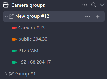 ![]() Camera groups | Under Camera groups, the user can find the groups created by the current user. The user can create, edit, and delete groups. Here, the following options are available:
