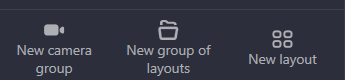 ![]() The shortcut buttons | The shortcut buttons to create a camera group, a new group of layouts, and a new layout. |