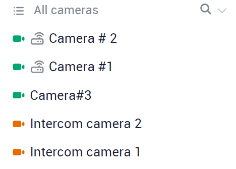 As a result, the camera list will display only the cameras that match the search criteria.
