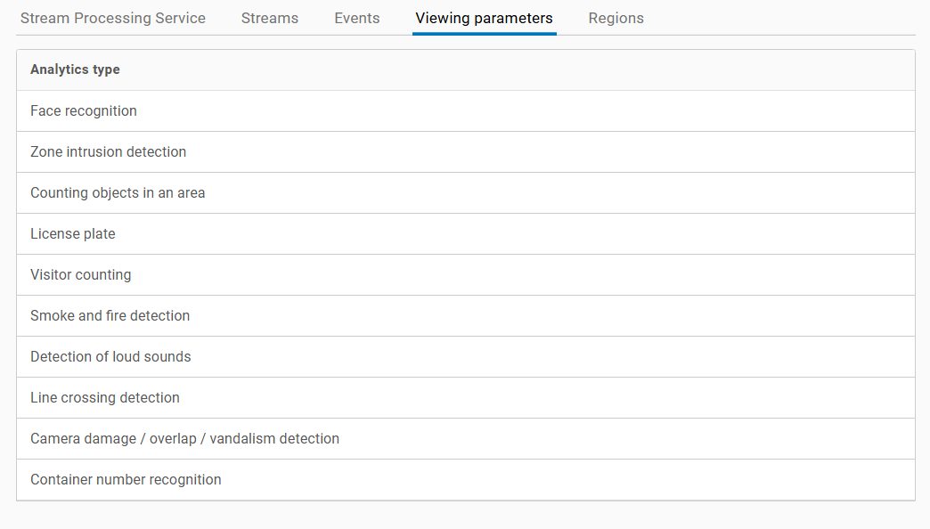 The Viewing parameters tab is designed to view the parameters specified for each type of analytics.