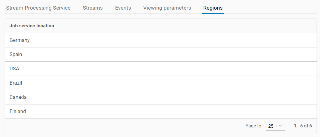 Under Job service location, you find all regions of the service. Selecting a name of the location navigates you to the Regions tab with the details about this location.