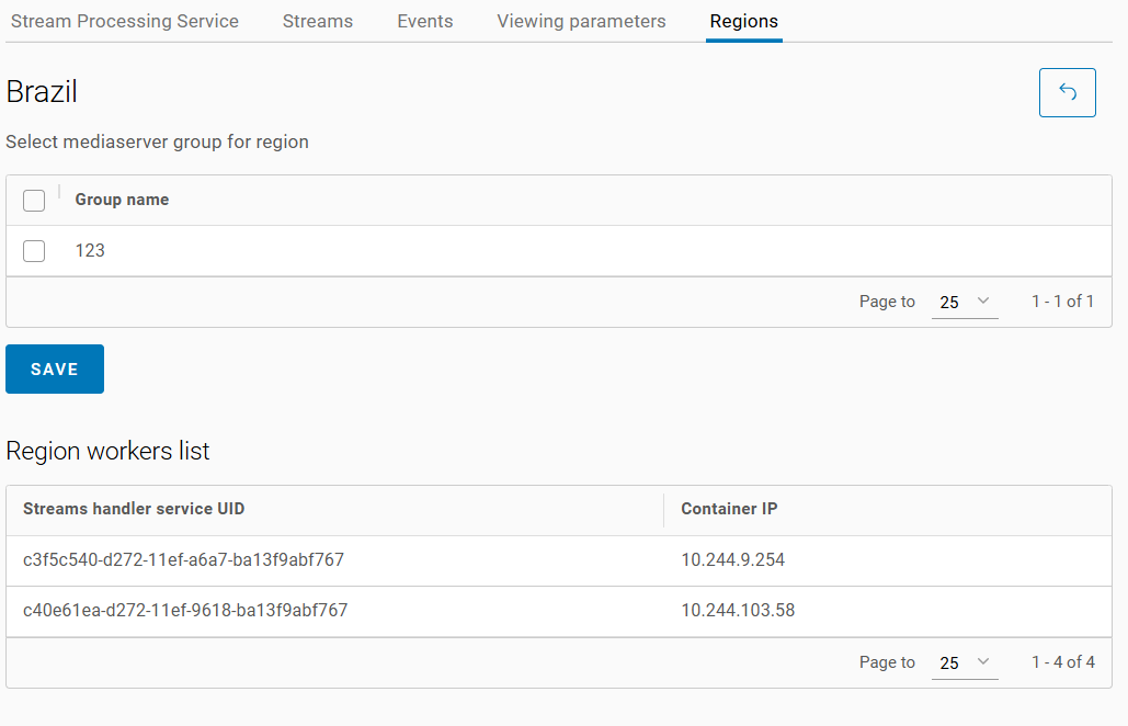 When selecting a group of mediaservers, all video analytics streams from the cameras assigned to the media servers in the selected group will be processed by the services of the current region.