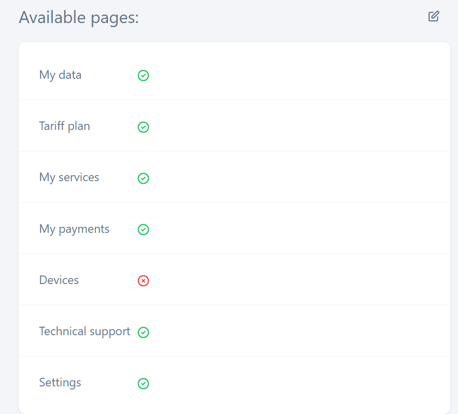 On the open page, the administrator can track the list of the pages and their current status of availability to users.
