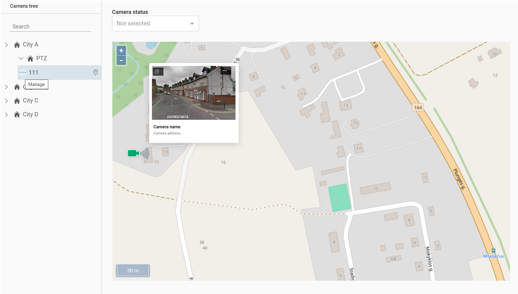 As a result, only cameras with the selected cameras will be displayed on the map.