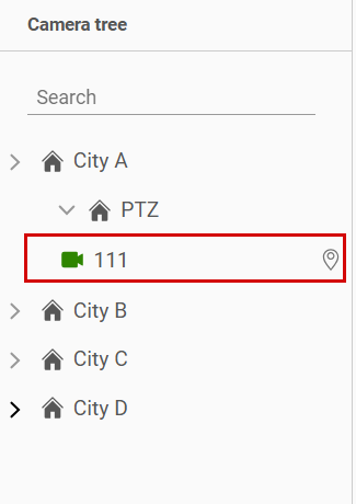 The camera tree offers a search feature for both camera names and tree element names. The search begins automatically after you input minimum three characters.