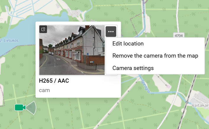Call out the preview window of the camera on the map and select the context menu icon (…).