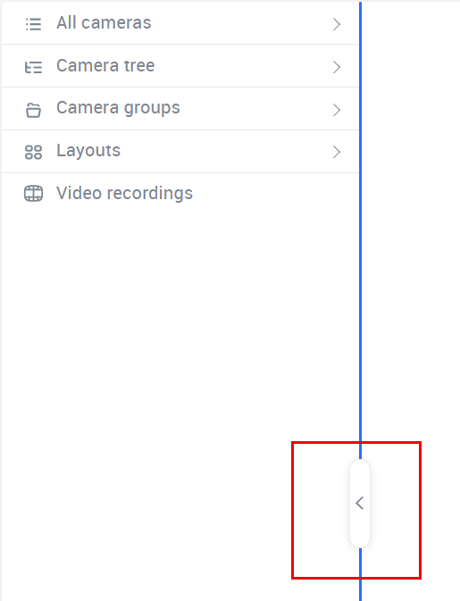 The left-side panel contains the sections. To view the details of each section, expand it. The following sections group the cameras: