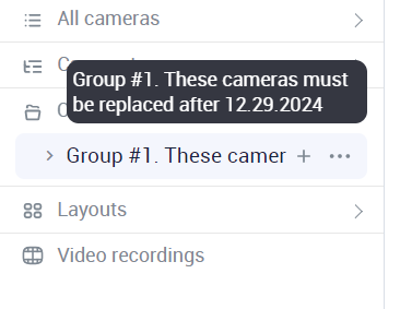To view the full name of a camera, group of cameras, and layouts, hover over the name. As a result, the tooltip will display the full name of the selected item.