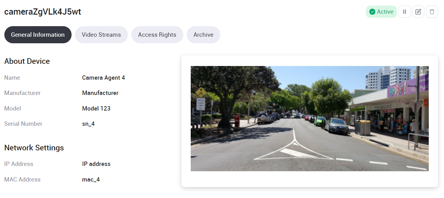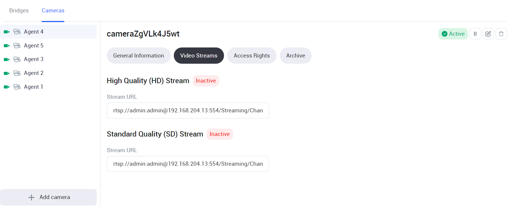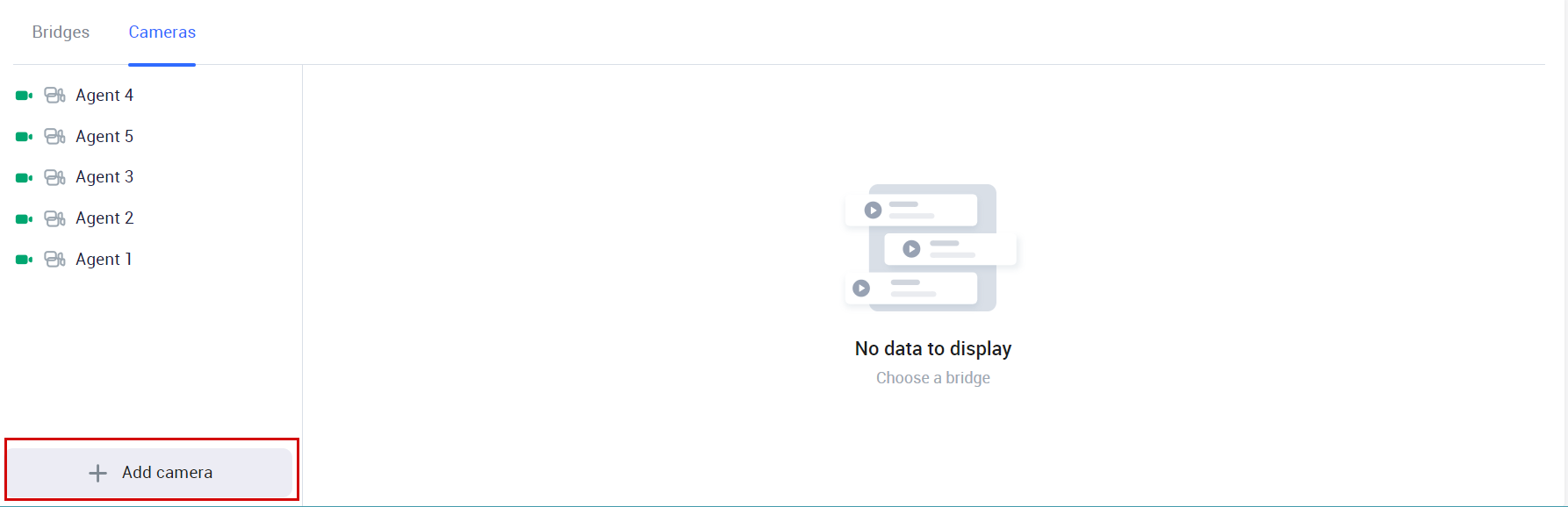In the Cameras section, you can add and view cameras that feature the installed firmware Agent.