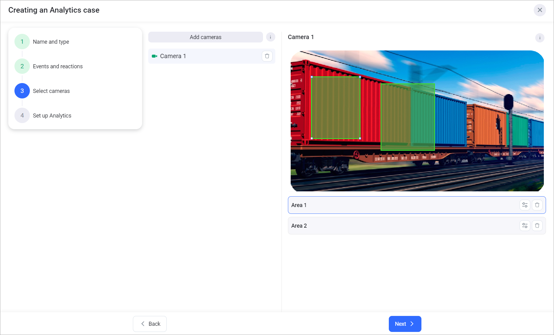 Select Add cameras and, from the opened drop-down list, select the checkboxes of the relevant cameras.