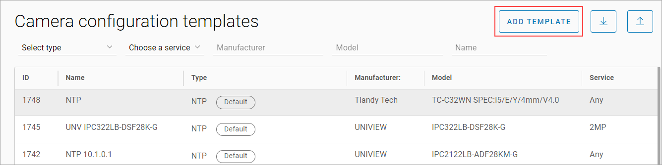 To make this template the automatic selection for all cameras of this model and manufacturer, enable the Default setting.