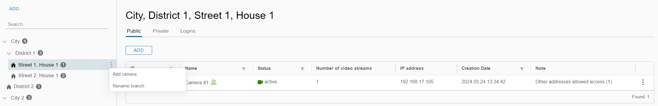 The cameras are structured according to a hierarchical addressing system. This is helpful when navigating through the camera tree. The numerical identifier specifies a number of cameras associated with the specific city/street/house.