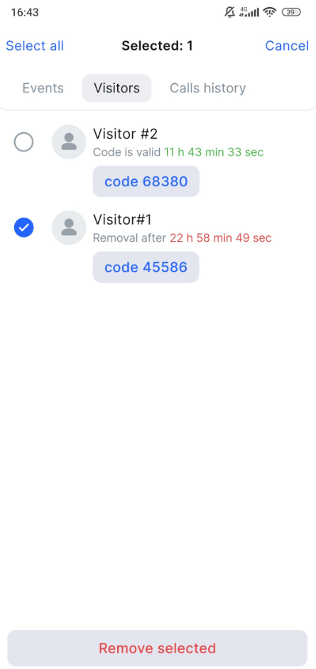 To select all the visitors in the list, tap Select all. To select individual visitors, tap the relevant checkboxes.