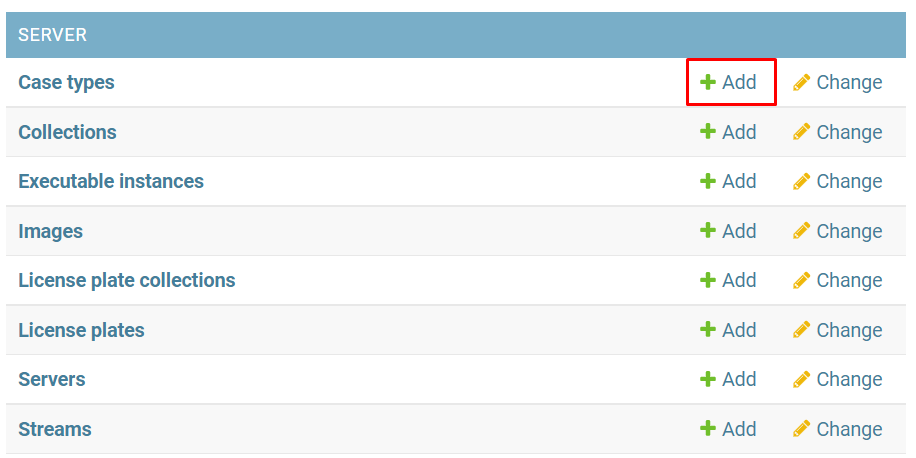 The Case types page contains types of available analytics.