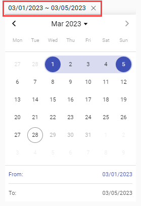 On the opened calendar, select the start and end dates of the period to filter the information.