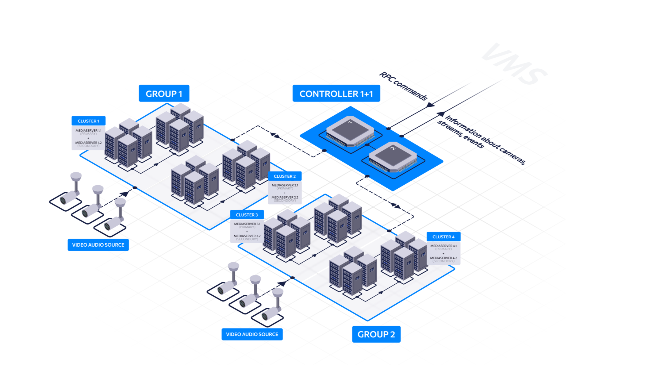 Within a modern multimedia data processing architecture, Mediaserver and Controller serve critical functions. Mediaserver is a high-end flexible server software solution that is designed to capture, process, store and stream video and audio streams along with related metadata. Controller, in turn, facilitates the interaction of Mediaserver with other system components. Controller ensures overall stability and system failure tolerance.
