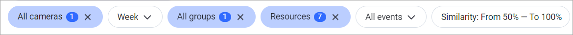 Selecting a camera or multiple cameras will filter the events captured by these cameras.