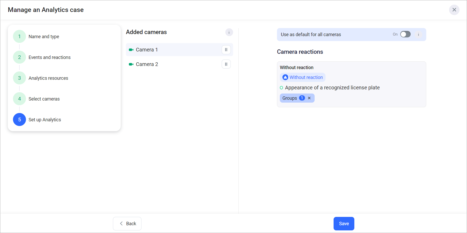 The following details are available for each camera added to the case: