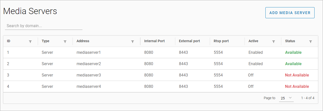 To perform a search, enter at least one character in the search field. The search is performed based on the Address field of the media server.