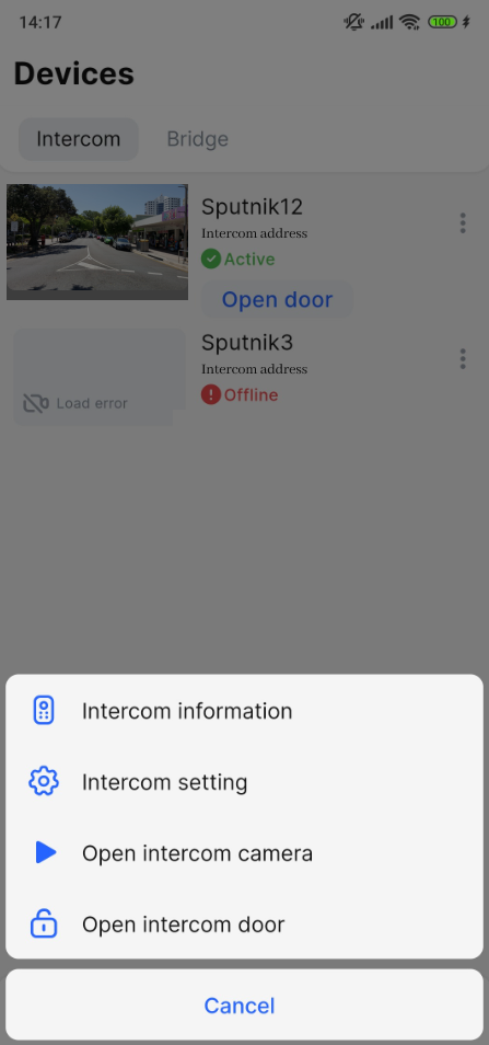 Users can unlock an intercom door directly through the mobile app bypassing the need for an incoming call from the intercom system. This streamlined access is achieved by simply tapping the Open door and Open intercom door buttons.
