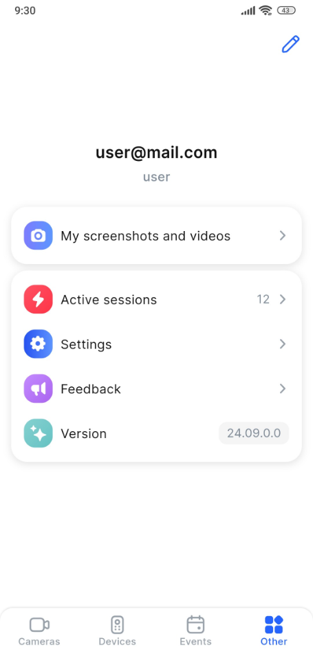 In the Other section of the mobile app, users can customize the app according to their preferences, select a language and interface theme. Here, they can also check the app version and view all active sessions. Additionally, the feedback functionality enables users to directly send their suggestions or report errors.