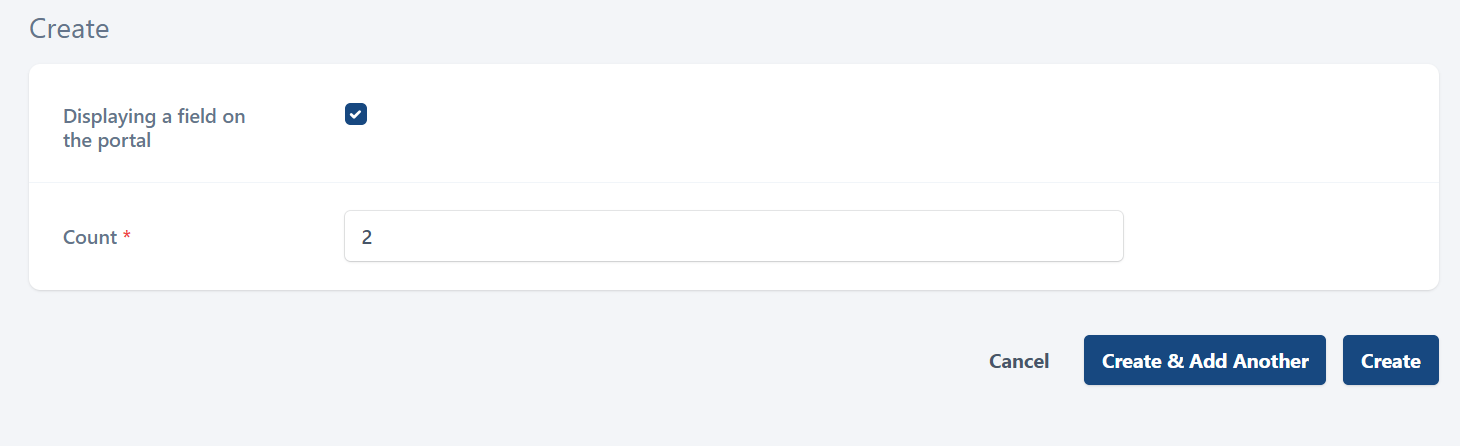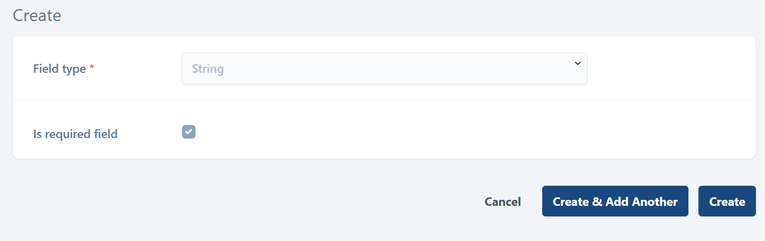 To create a field, select the Create button. This opens the following page.