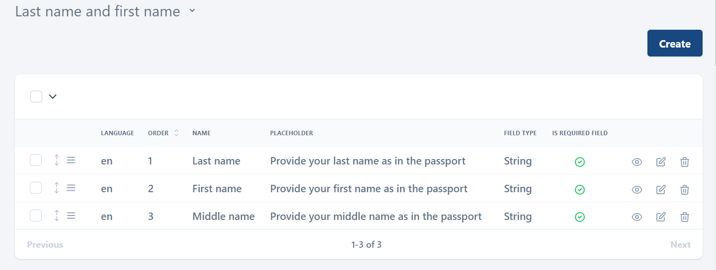 • Passport details. This block is used to add the fields in which users will specify their last and first name.