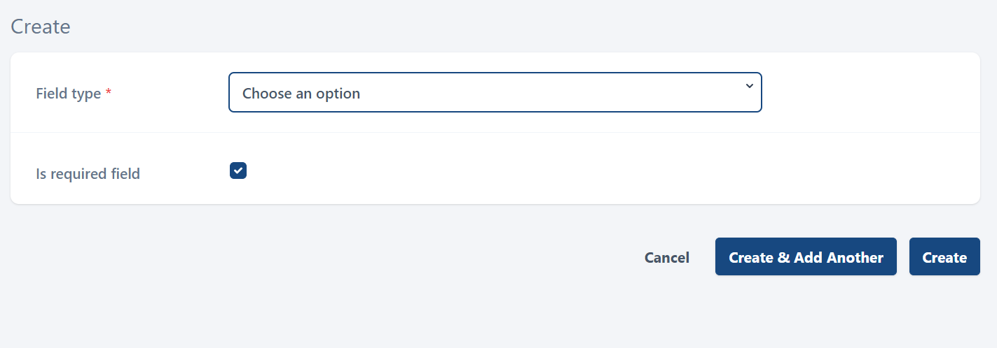 To create a field, select Create. This opens the following page: